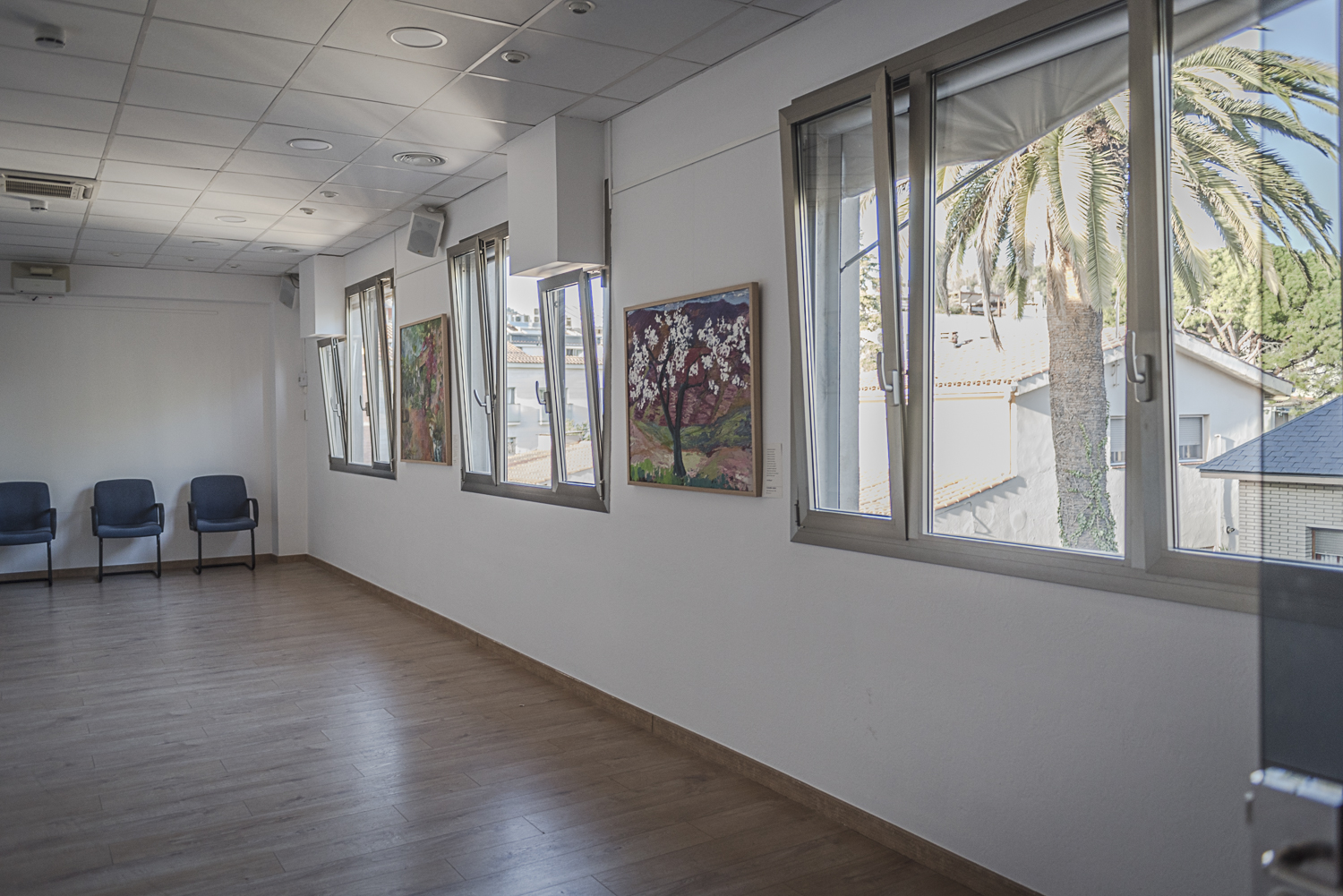Situada a la tercera planta i accessible amb ascensor, és un espai de 55,40 m² ideal per a activitats diverses com conferències, seminaris, exposicions i ball. Amb aforament per a 56 persones, disposa de climatització, parquet, cortines per enfosquir, projector, equip multimèdia i Wi-Fi. El mobiliari permet configuracions flexibles i és accessible per a persones amb mobilitat reduïda. Cal deixar-la endreçada després de l’ús.