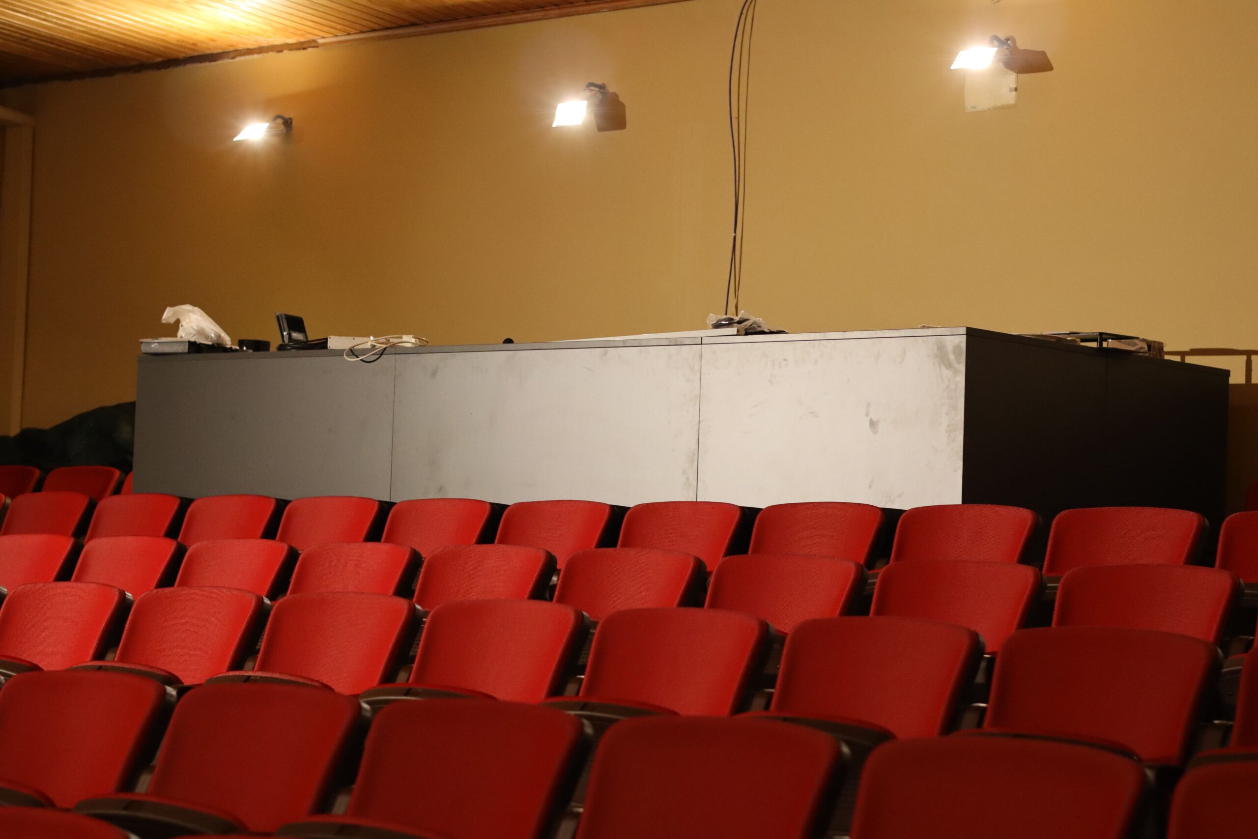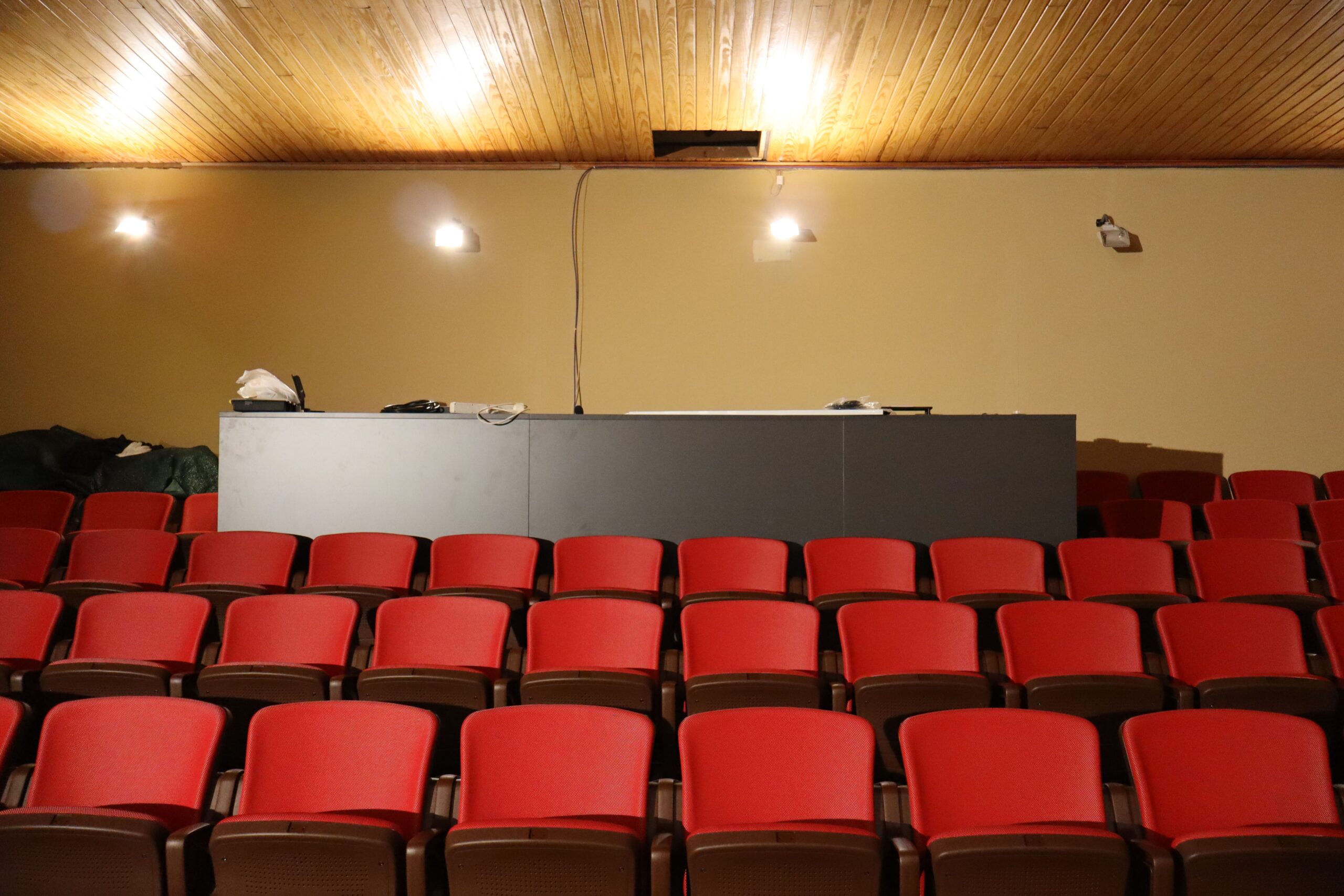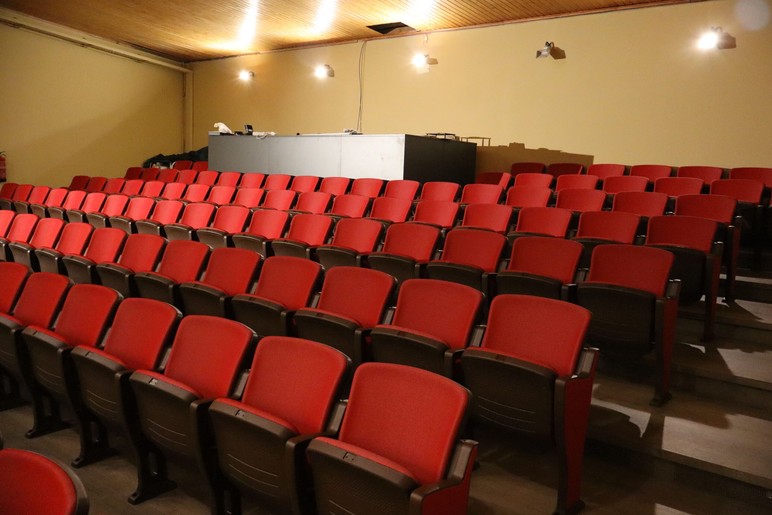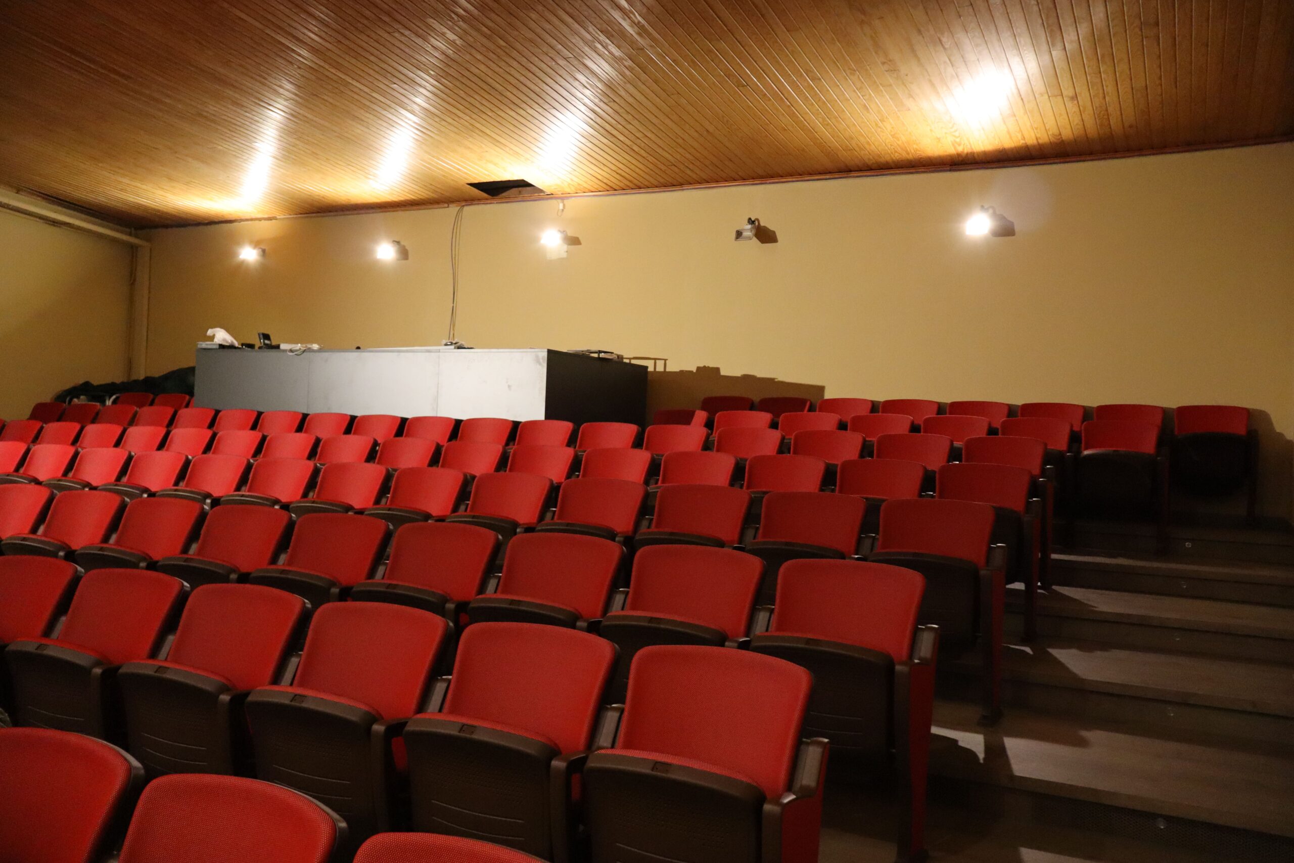 Ubicat a la segona planta de l’edifici i accessible amb ascensor, és un espai de 190,50 m² amb un escenari de 77,35 m², ideal per espectacles, concerts, cinema i esdeveniments. Equipat amb telons, piano de gran cua, projecció, so i llums professionals, compta amb camerino, climatització i Wi-Fi. Ofereix suport tècnic i és accessible per a persones amb mobilitat reduïda.
